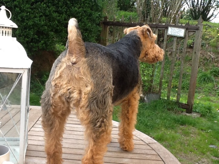 I get up, put on said attire, lift the blind and say Oh! It is raining how surprising!! Then off I go down the stairs to be greeted by two Welshie arses (and trust me there is nothing better than a Welshie Arse)