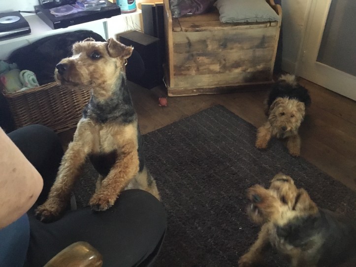 As is always the case with three Welsh Terriers in the garden, with four cats (Tilly has sadly not returned) and six chickens, mayhem ensued. Welsh Terriers are known for their naughtiness and stubbornness so the cats set up a cat flat in our bedroom, and just starting to decamp now. One of the themes of the week was ‘Where’s Dylan?’ Or hearing people say ‘You Cow!’ You just knew that they were talking about the dog!