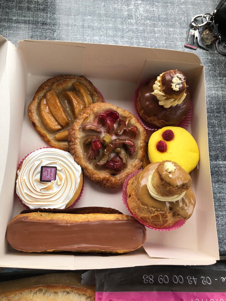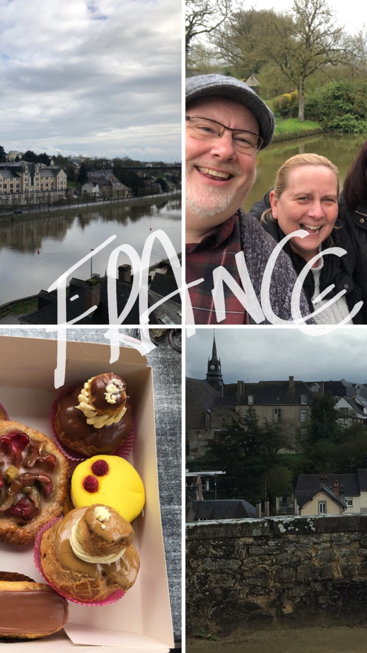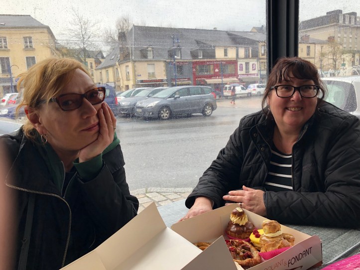 But eventually the rain turned into a downpour and we decamped to,our local town of Mayenne for some coffee and patisserie