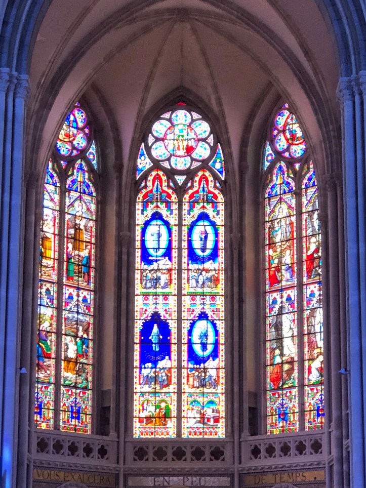Later in the week, with me in tow we visited the beautiful pilgrimage village of Pontmain with it’s stunning church and stained glass windows. It is said that the Virgin Mary appeared in the village, and stopped the advance of the Prussian forces in 1871.