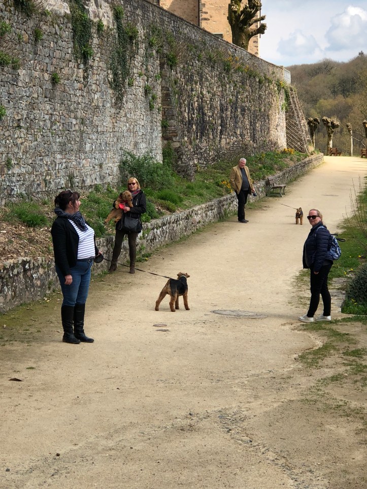 After a day to recover from the journey they were off on their adventures, sometimes with me in tow. At the beginning of the week we visited the pretty little village of Fontaine Daniel, four of us (sadly Rich was unavailable) and the three Welshies, bundled into a Peugeot; and despite the April rain we were determined….