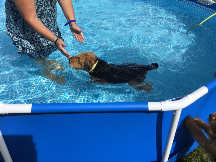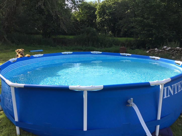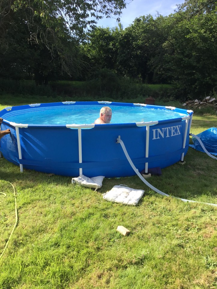 As in most of Europe the summer has been hot, and is getting hotter, the pool has been purchased, and lilos have been added. The dogs have been dunked, we have become browner by the day, even my husband’s asbestos legs have gone brown!