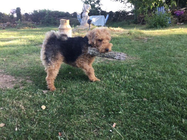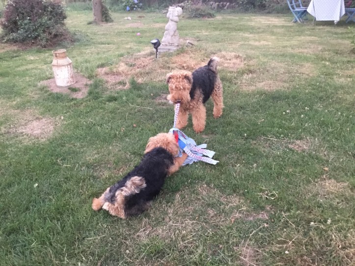 She loves a mop that puppy, so now we get her to come to us by using my old mop that was destined for the dechetterie (dump). Those dogs have been bought so many toys but the old mop head it appears is the best!