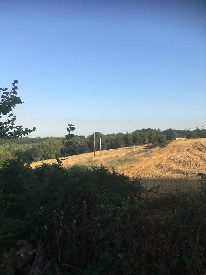 I’m listening to the birds singing, and looking at the never ending fields that have already been harvested, the huge rolls of barley taken away.