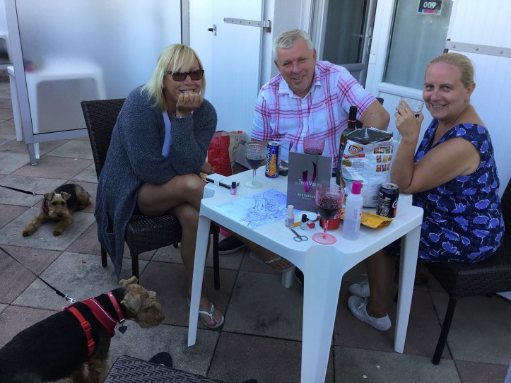 So off we went, without our map, and got lost! So back we came and opened the wine, fed the puppies, ate crisps, painted our toenails (yep Rich has gone for a pale pink!) and are sitting on our terrace.