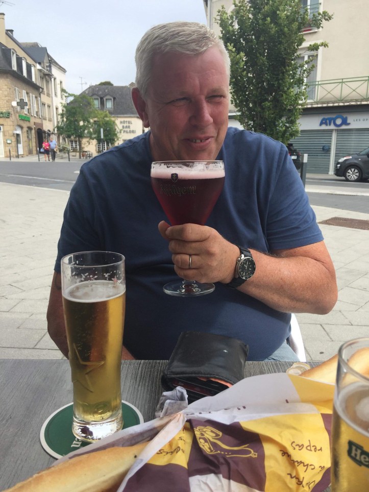 To finish the last few days of Jenny’s holiday and to celebrate Karen’s birthday we visited the vide grenier at Evron on Sunday, and found it’s beautiful medieval church and monastery and a small little bar in the square, a rare thing in rural France to find a French bar open! We were so excited we sat there for a couple of hours drinking in the atmosphere, and ruby beer of course!
