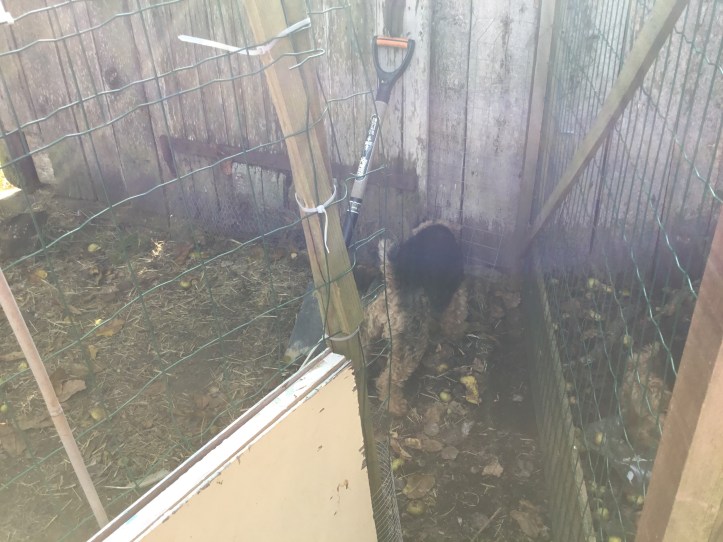 We thought that we might have a problem after the chickens appeared to have stopped laying, and it appears that rats will steal the eggs and attack the chickens. They knew that they were safe from Wiglet (aka serial killer) because she could not get in the enclosure, although at times she would go mad trying to get in there, and she would also spend hours staring at something hiding in the twigs from the trees we had cut down, with her little tail wagging as if to say “I am so pleased to see you, come and play little rat!” She has dug holes all over our garden trying to flush them out and we planned, after we moved the chickens of course, to let her into the old Chicken Hilton and have a field day.
