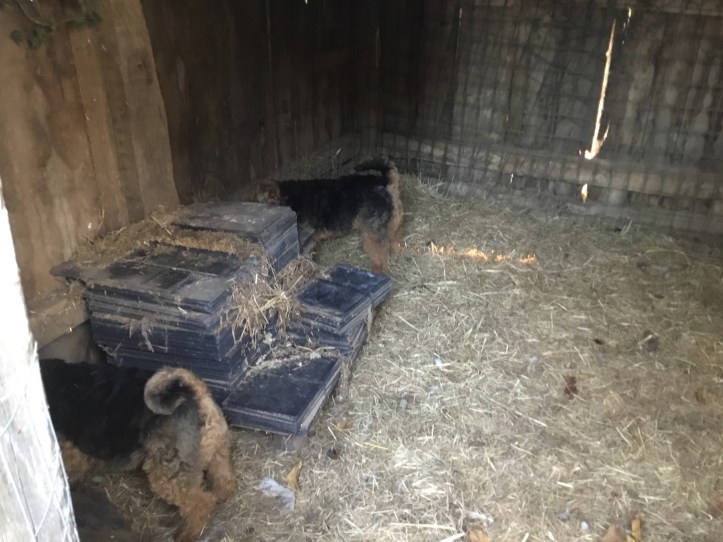 In addition Rich found a cache of hidden chicken eggs under the hay in the old suite of the Chicken Hilton that was once occupied by the chickens; the poor chicken was laying and was hiding them from the dreaded rats! The fact that they had not been eaten is also evidence that the rats have been scared off – straight into the jaws of Wiglet!