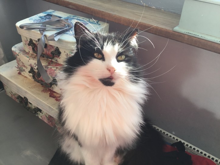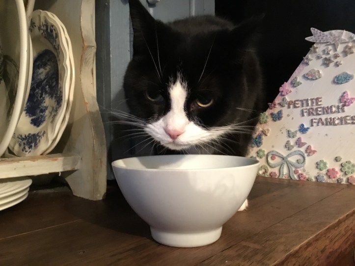 Then we got Daisy, we brought her home with the shopping, as you do! Tom had gone to university and she was our ’empty nest’ baby. She is a huge, but incredibly gentle cat, just happy with life, and a bowl of milk and cream.