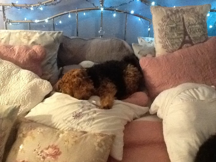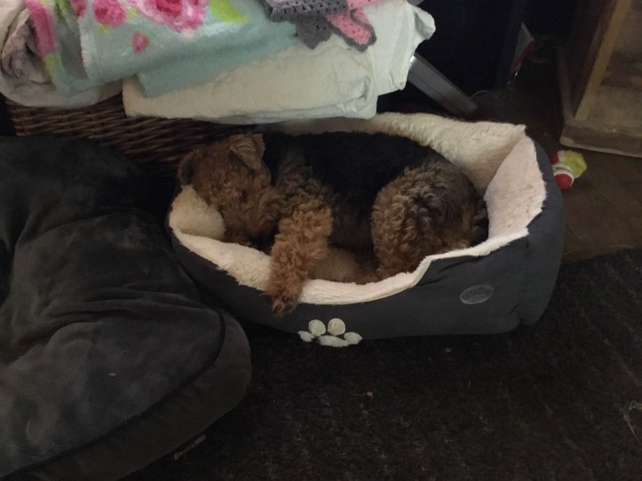 She gives us so much love, and when she smiles her wonky little smile it makes my heart break for the suffering she had. When I bought her a new bed, her own bed that no other dog had had before her, she got in it and that was that, it was her place; and she lays beside me every night in that bed, snoring.