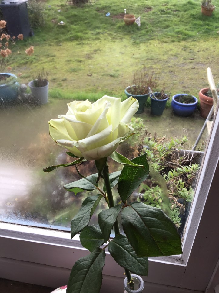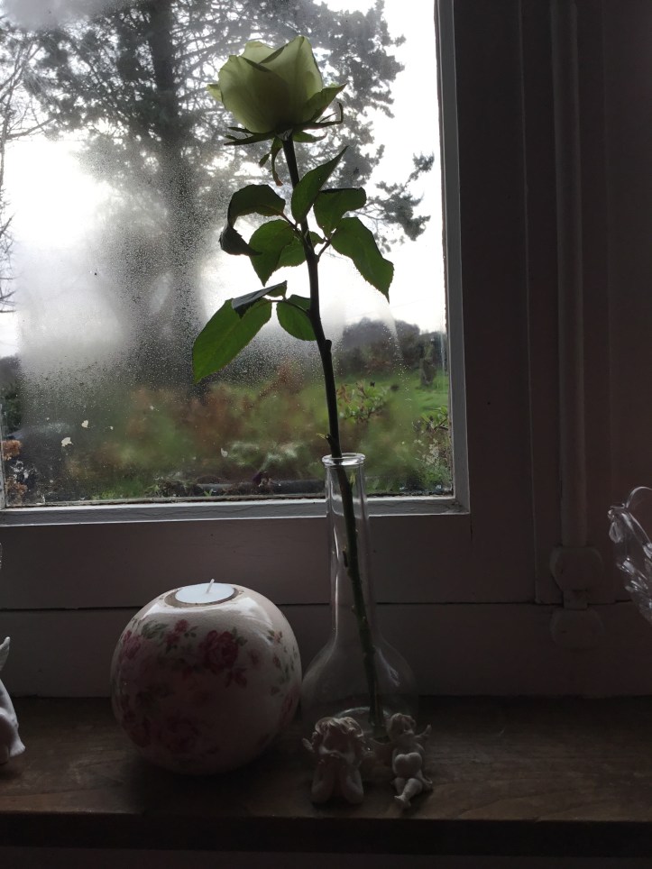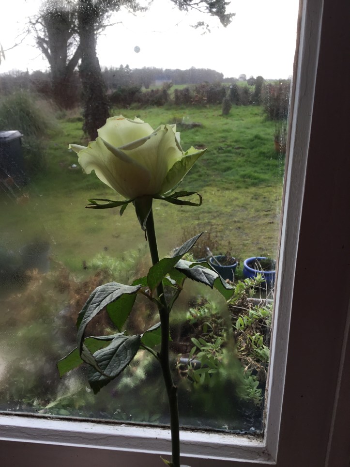 We had no money, every penny counts (still does), but as I was leaving the supermarket a lady was there who represented a society for people with arthritis. They were asking for you to either buy a brioche (a form of sweet bread) from them, or a rose bud, and the money would be used to help people with arthritis who could not work and were on a low income. I could not afford it, but something made me buy this rose for two euro. I looked at Rich and said ‘I have arthritis, and I know we have nothing but surely we should all try and help other people.’ (Correction there we do have loads: each other to start, a house over our head, water, hot shower all of our blessings: you may want to read my ten consecutive posts around counting our blessings here is the first one Counting my blessings: Day one ) and I bought the rose.
