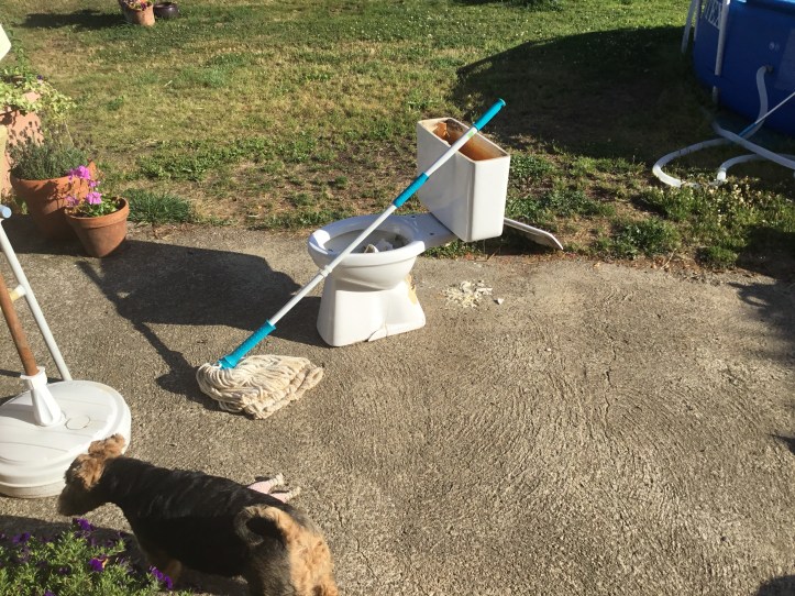 So why the picture of the toilet? This is our old loo, the one we have had in situ for four years (yes we have lived here four years last Friday). The cracks that are in it were there when we moved in and the ‘thrifty’ or tight, depending on how you want to look at it, French farmer who sold us the house had sealed the cracks with mastic! I kid you not, mastic!