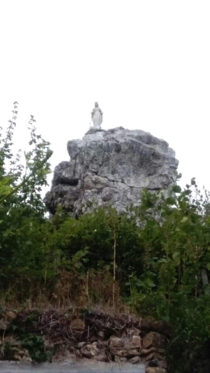 This is Chailland, a tiny medieval city of character, only forty minutes from where we live now. It nestles in the valley, with a large statue of Mary overlooking the town from a sheer rock-face cut into the hill.