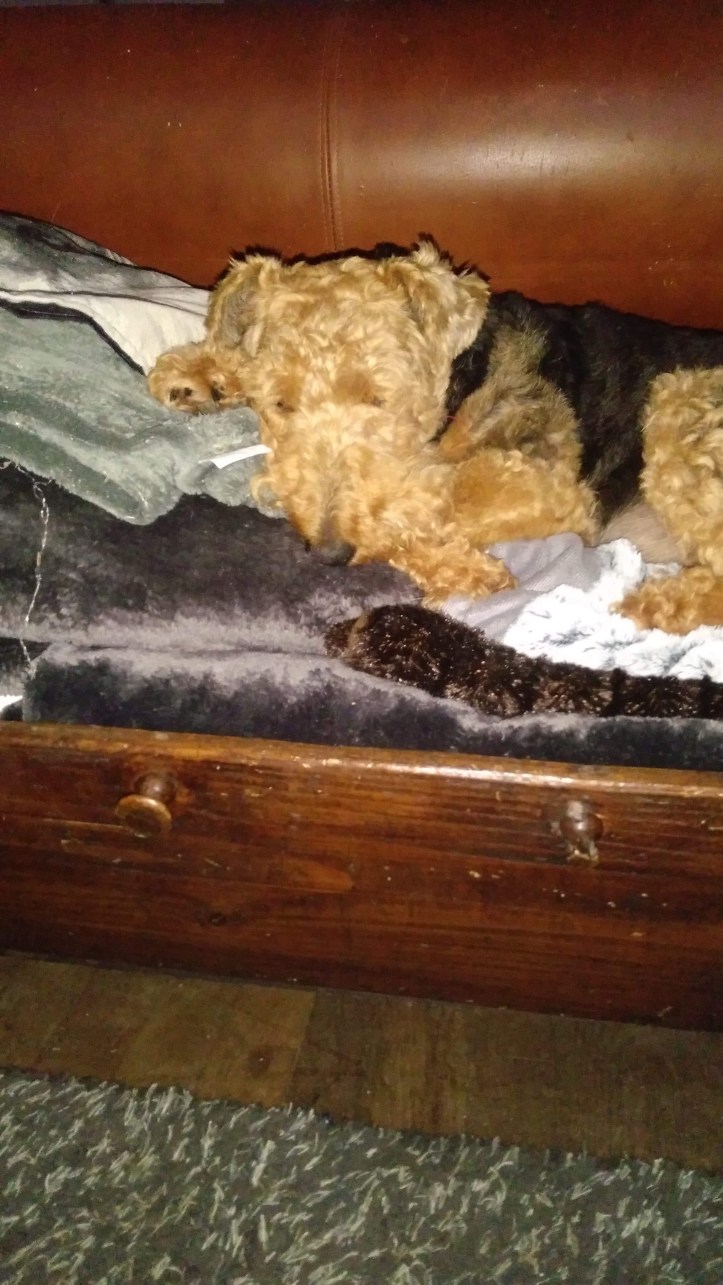 We Don’t have much in material sense, but we have each other, and tonight we have two sleeping Welshies, one in her own French antique cot!(She’s been dying to get in that because she’s seen the cats in it!)