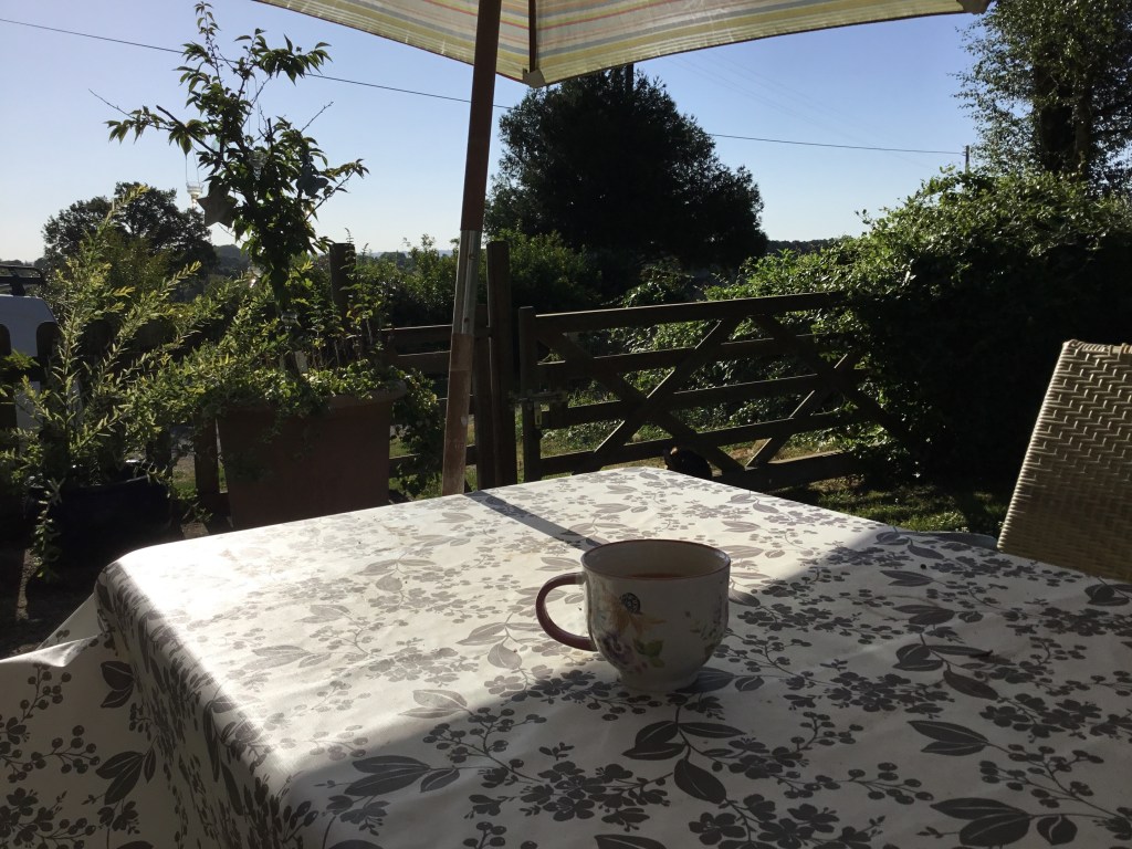 I am so aware of the fact that this may well be our last summer here (I never assume a definite I am not doing the driving ) but I know it’s pretty likely. We have taken the weather for granted over the years, the sunny mornings and the fabulous views, and have often sat inside drinking our tea; but today the morning is beautiful and we are sitting on our terrace, drinking our tea, and treasuring this moment.