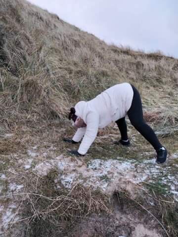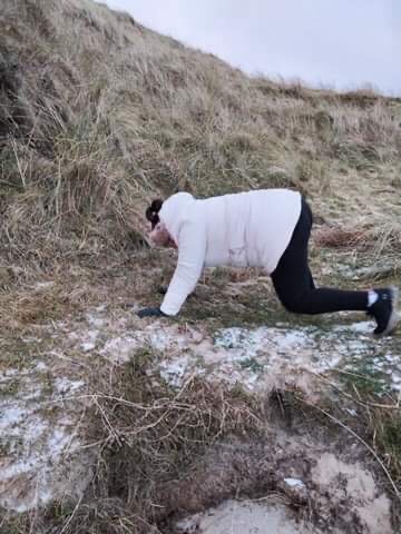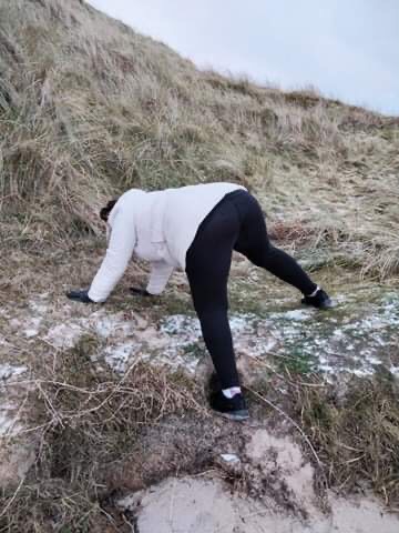 I was losing this fight, but still I carried on: I bought a hiking stick to try and help when we had to just step onto the beach, because I couldn’t even step on the beach! Something that RD found so hilarious he took photos of my trying to climb up onto the dunes.