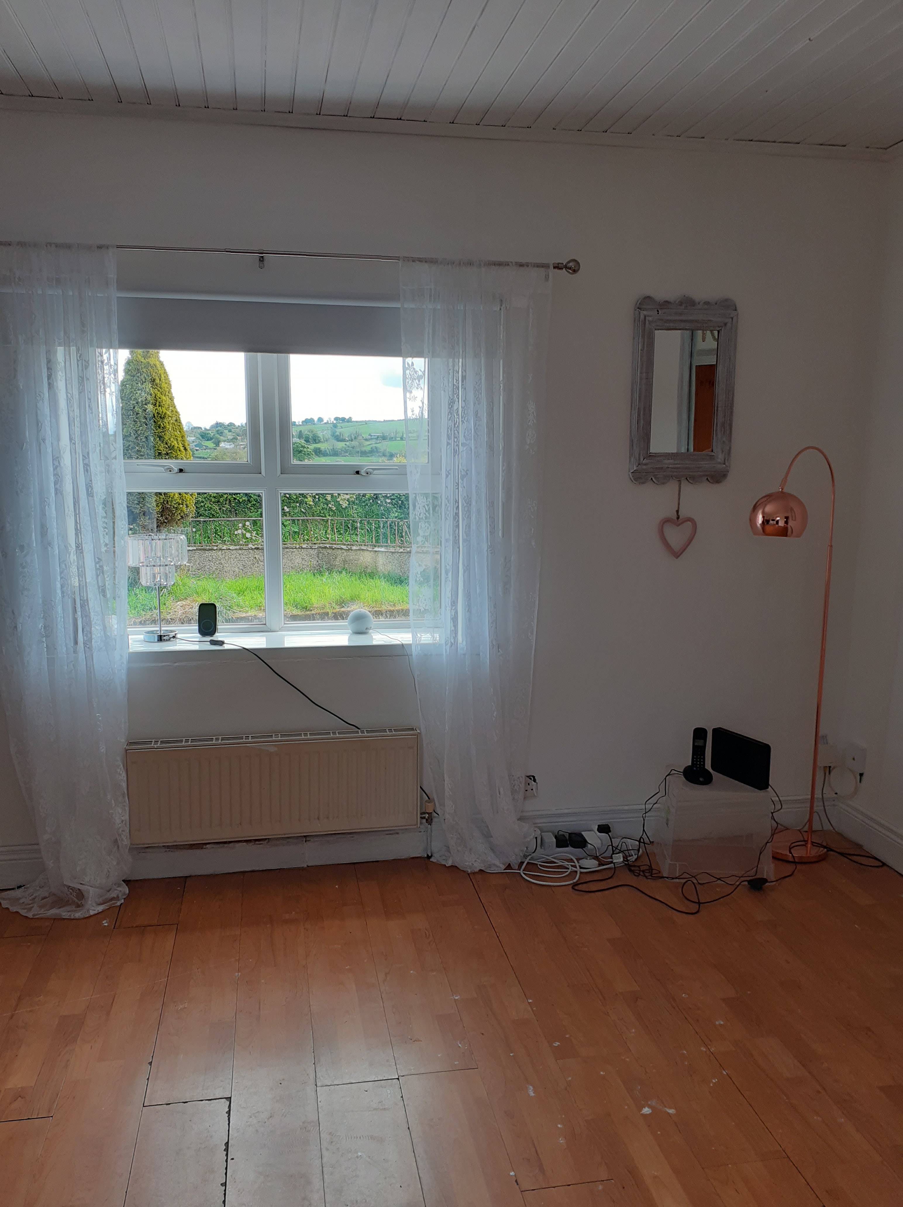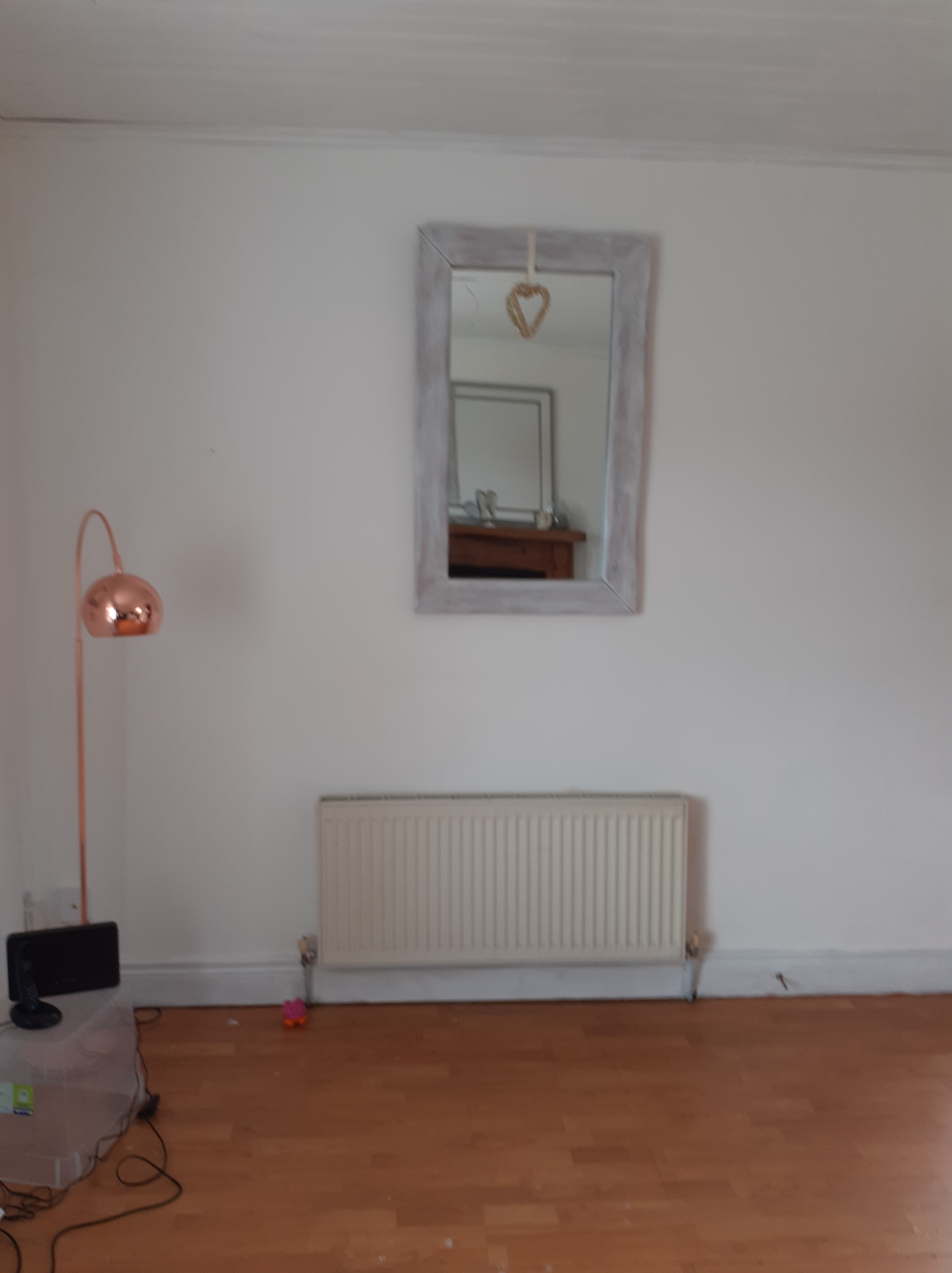 The mirror above the fireplace is new, but the wooden mirrors were left here and I gave them a new lease of life whitewashing them and adding some pretty cheap hearts that we found. I miss my stars, that are currently still trapped in France (more of that to come.) I do believe that a star is for life and not just for Christmas. Its funny the small things you miss.