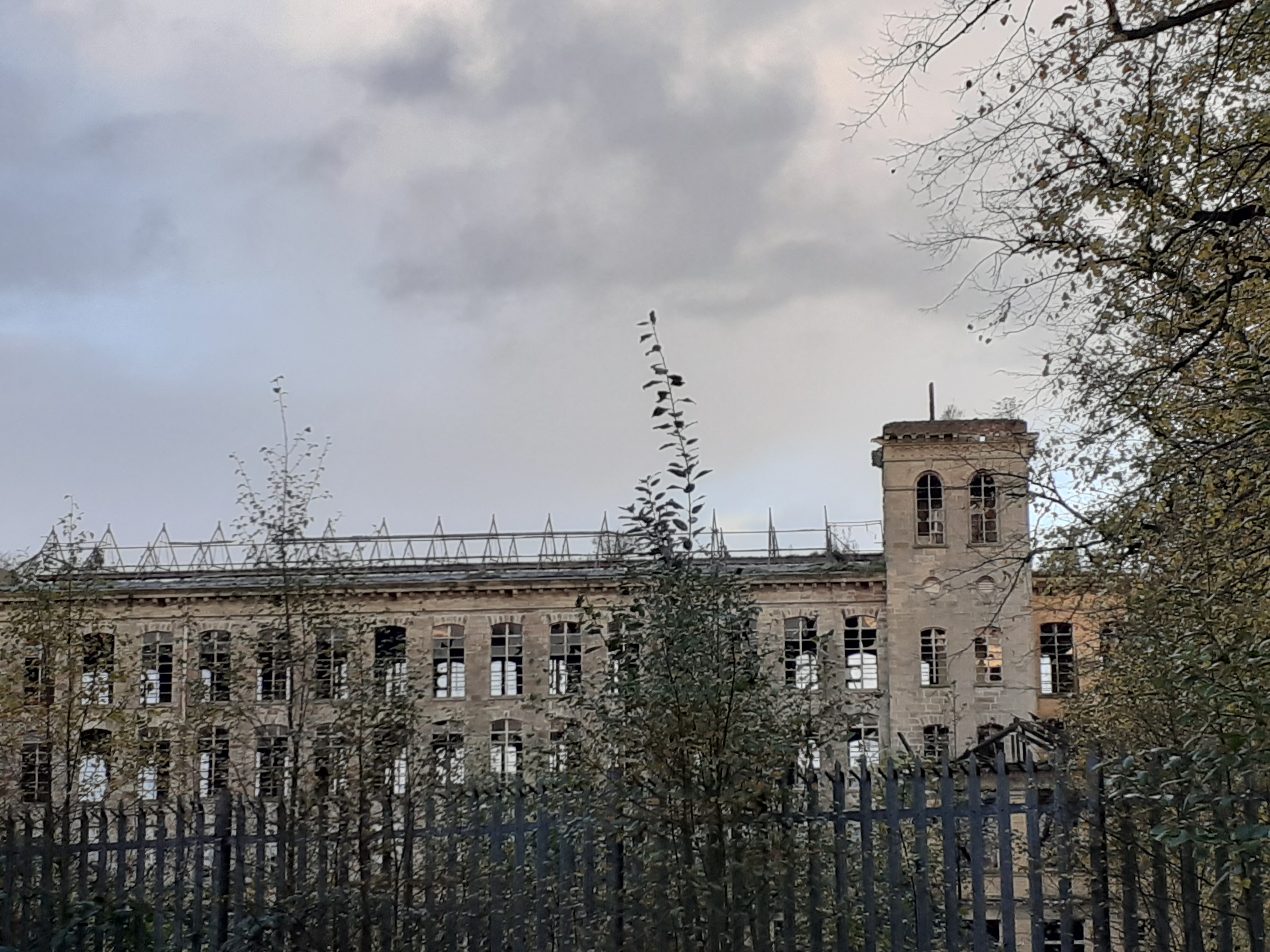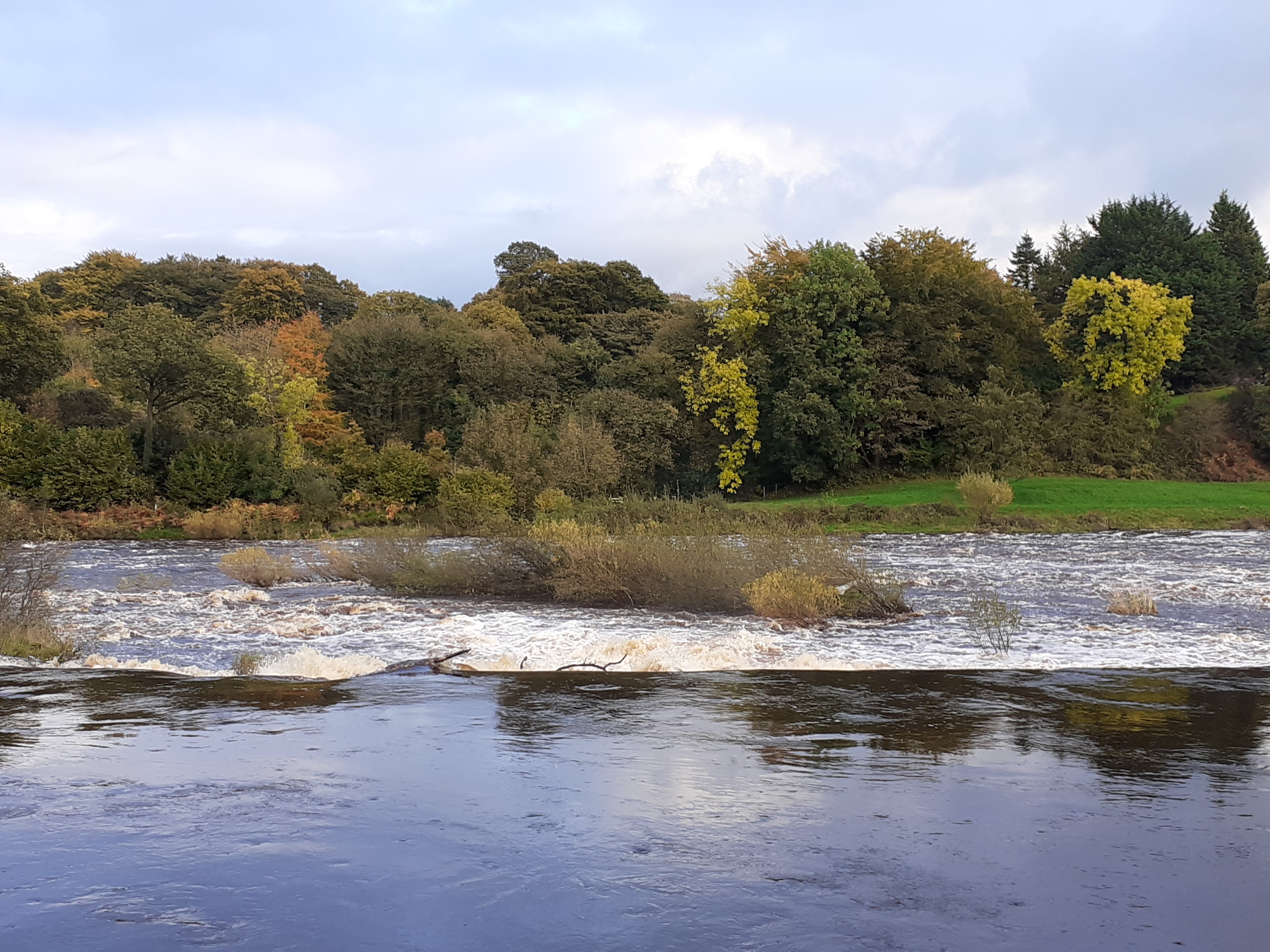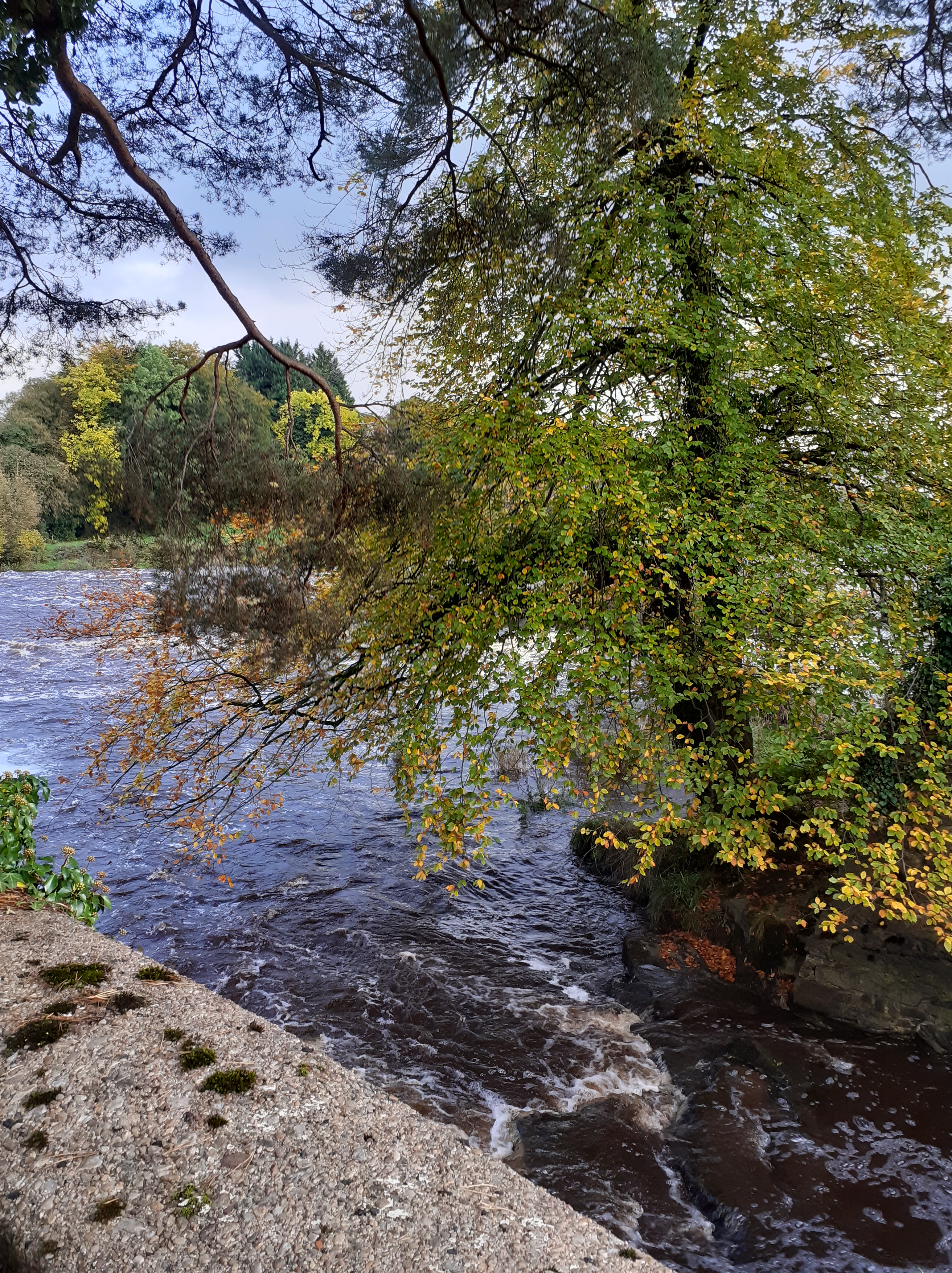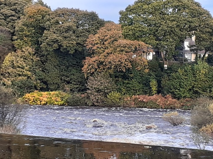 The river is banked by a wood, and it has immense power. At this time of year it becomes a raging torrent of rapids, which you can view from the viewing platform, that has a Victorian dilapidated bridge to it. I let RD take his life in his hands and cross to it. There is a man-made weir where some of the water is redirected to pass the mill, and on the day we visited the whole spectacle took our breath away.