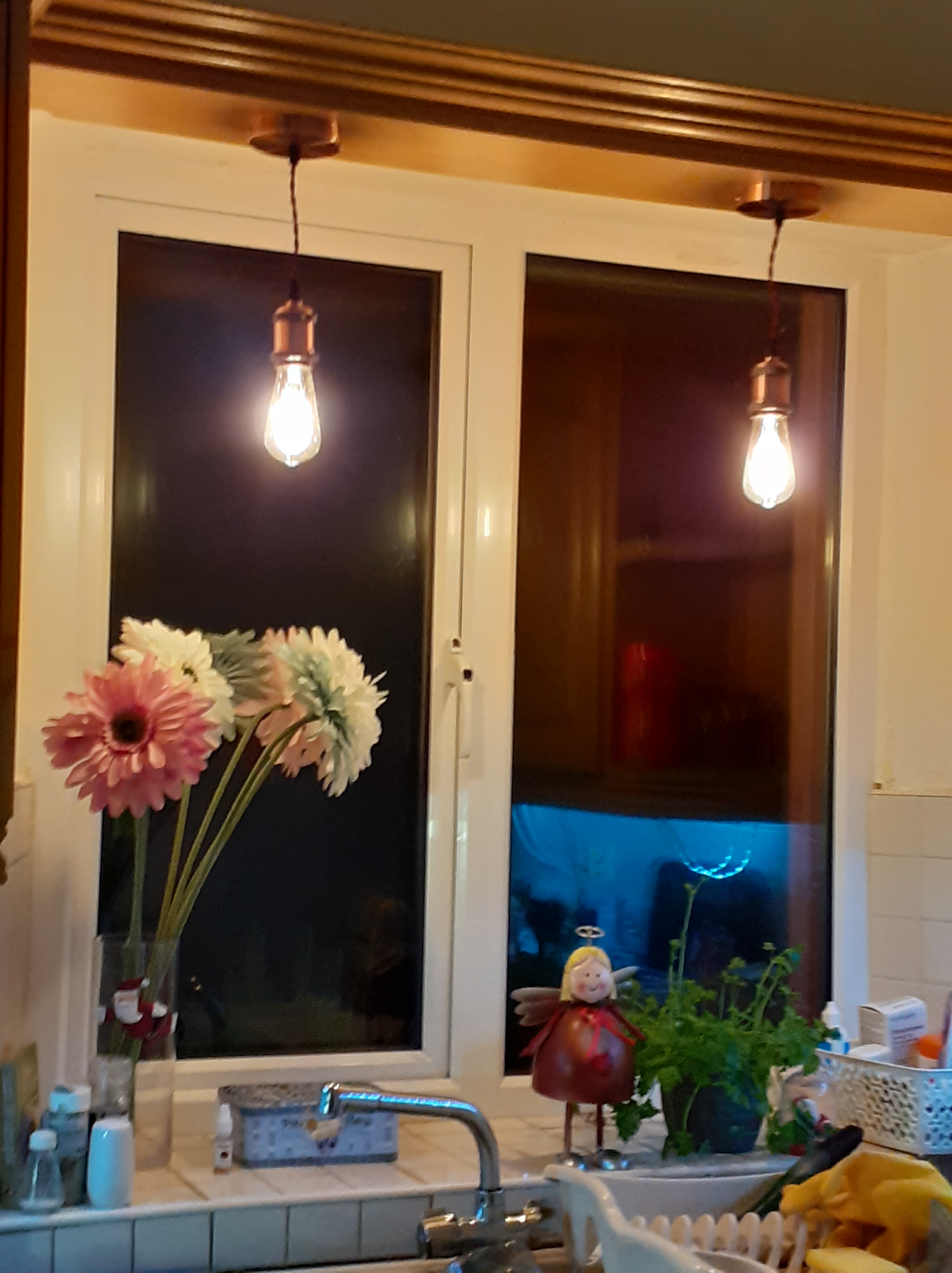 This week RD found these beautiful lights in a local bargain shop, I am lucky he can work with electrics and he fitted them above my kitchen sink just in time for Christmas, I love them. They just add to the warmth that I feel from my home.