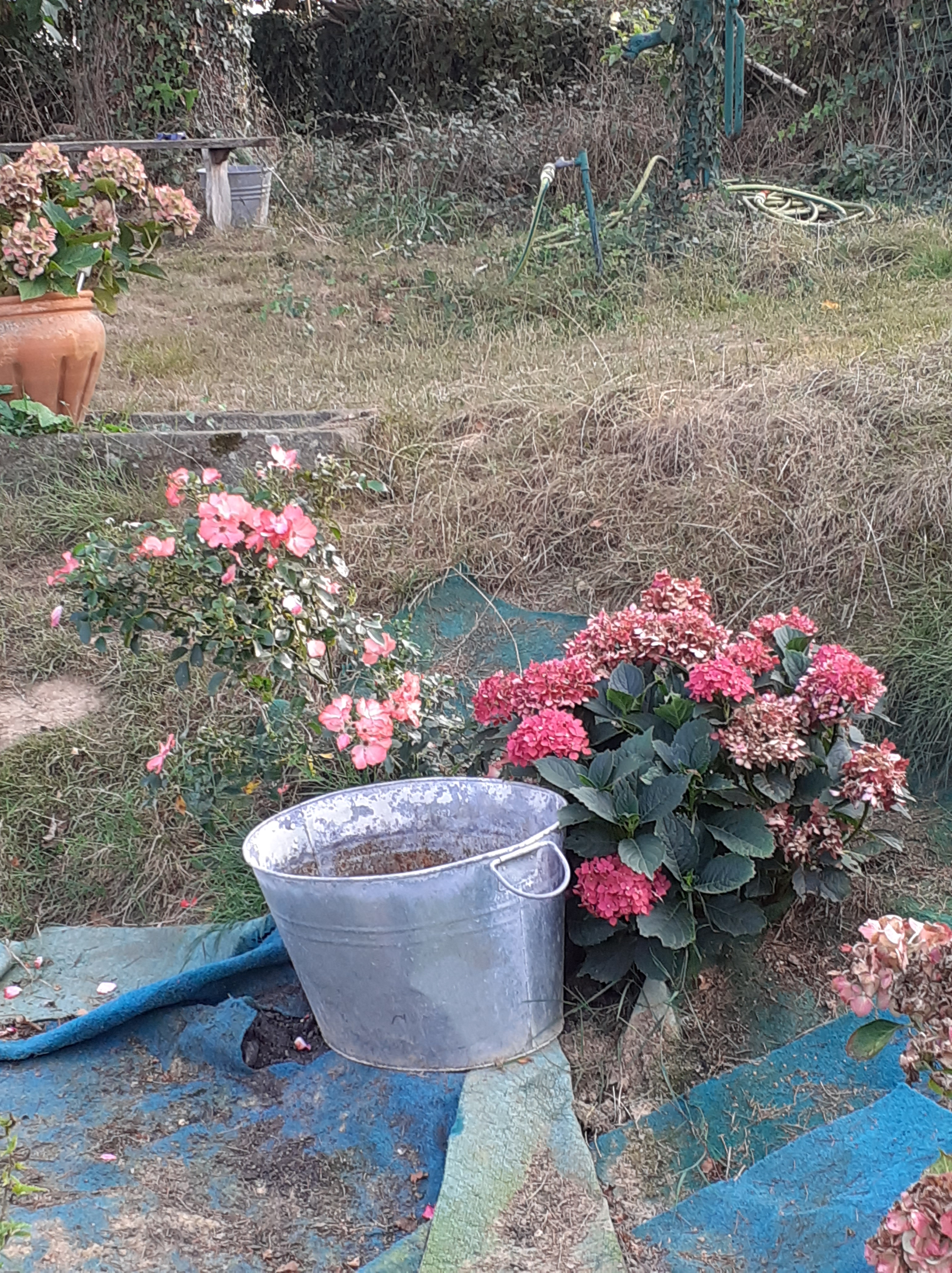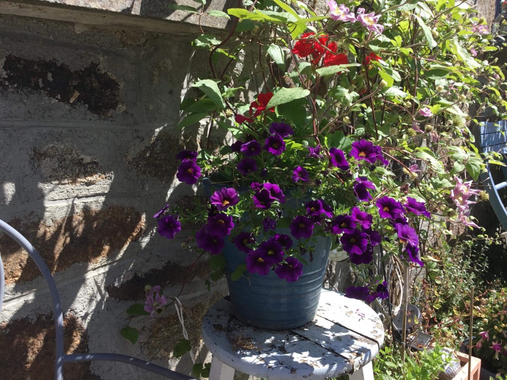 Our garage is not pretty, but we have created the bird sanctuary on the garage, and I have started to replace the climbing plants that I have sadly lost in all my adventures. My beautiful blue pots all got left in France, I have to start again.