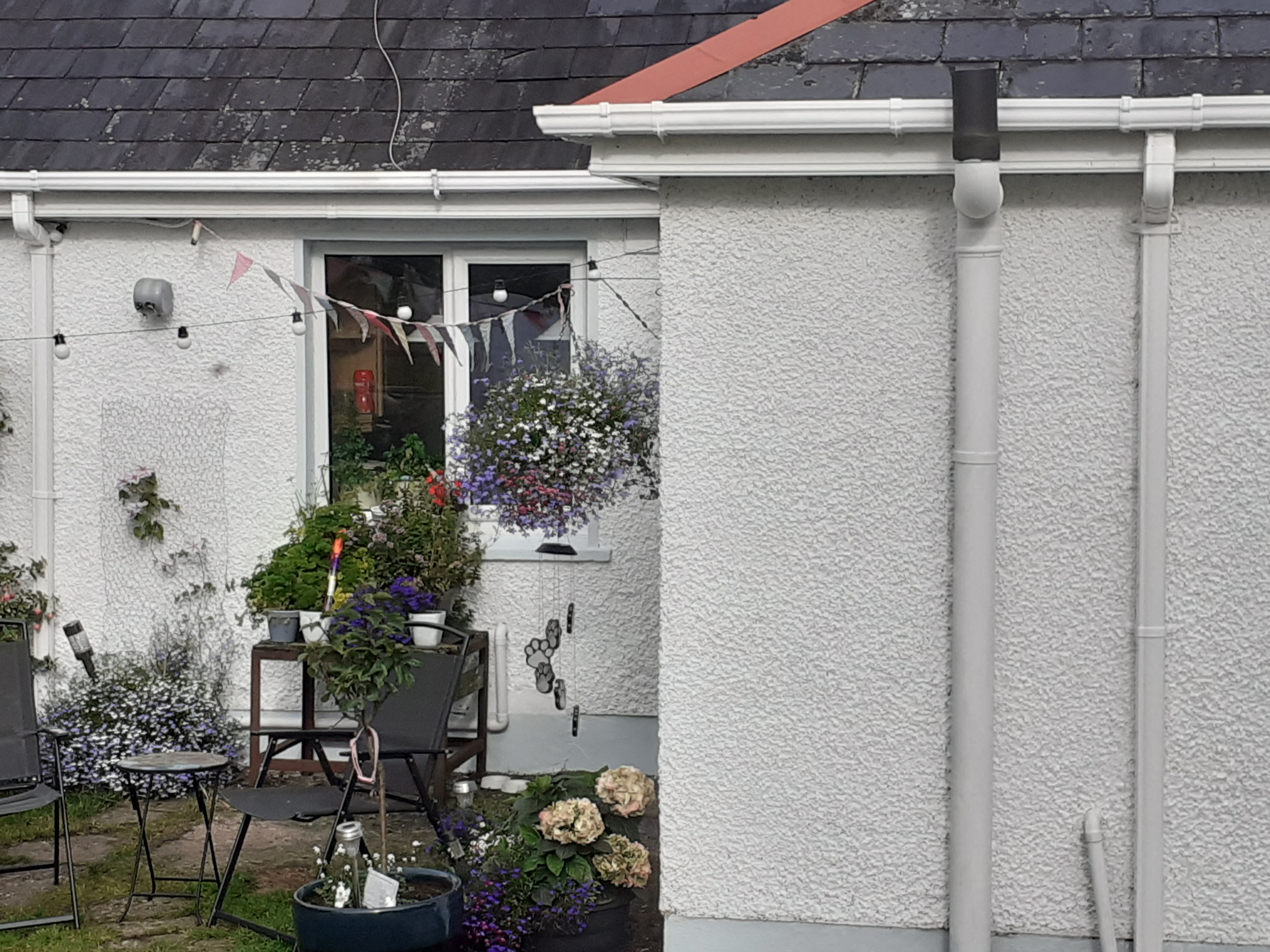 So sticking two fingers up at Covid we did get on with it. The render on the house is uneven and it was hard work working the paint into it: but despite the increasingly hot weather, within four days it was done. On the last day we worked from 12pm until 9pm, with few breaks, resulting in RD suddenly feeling incredibly ill and having to sit down urgently.