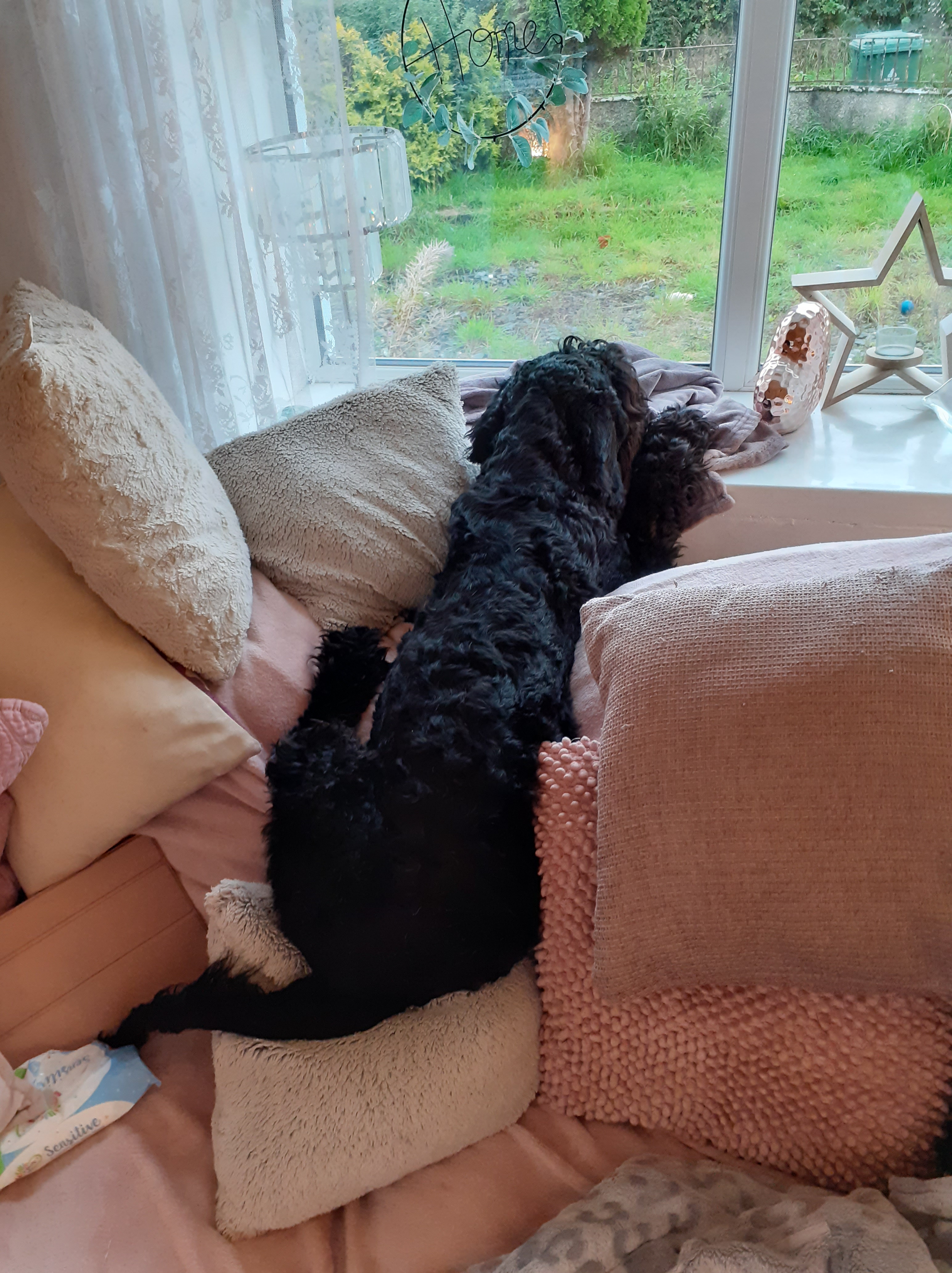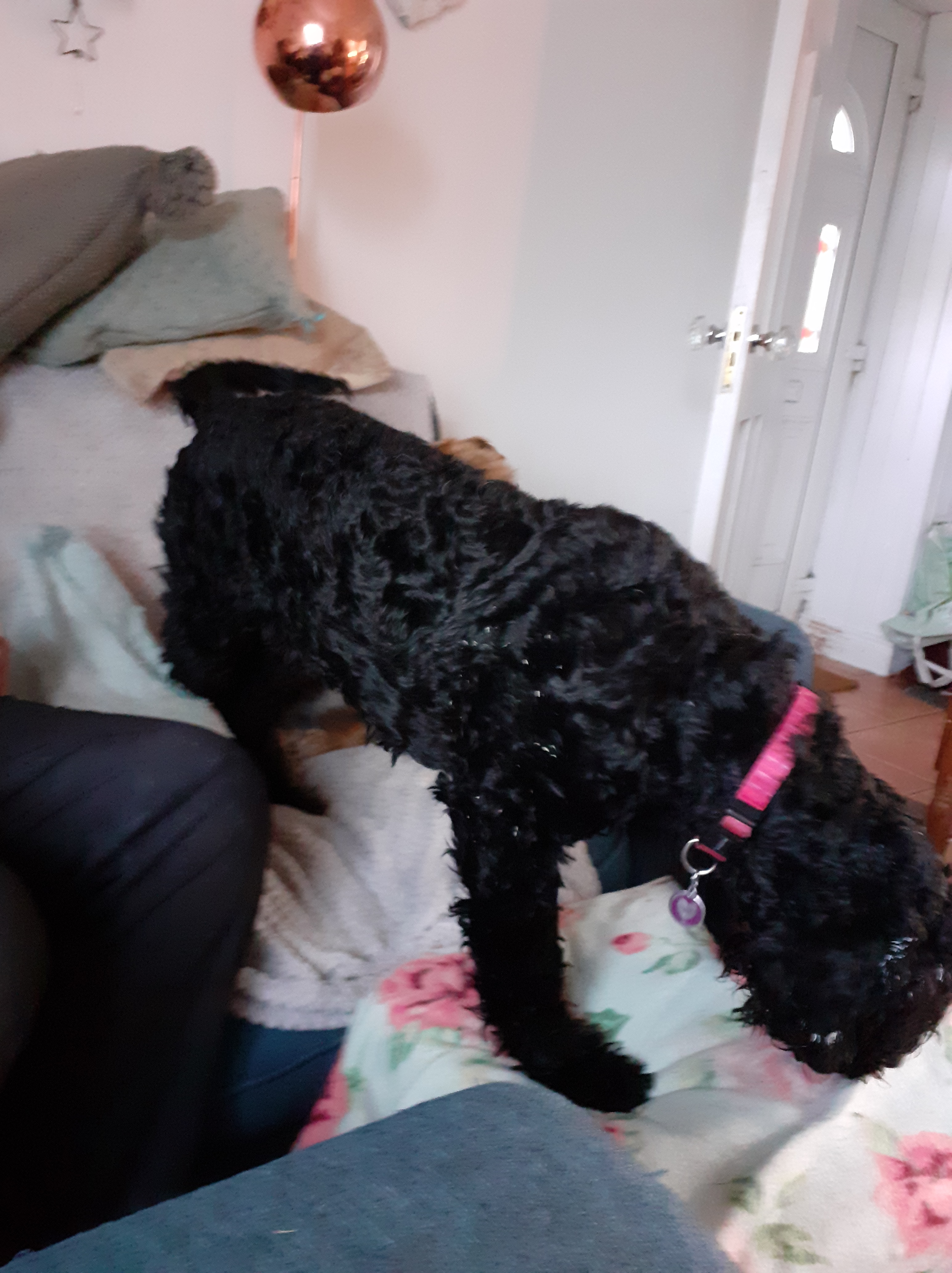 I am not going to lie Elfie was a shock to our system. We were used to Tenacious little Terriers and whilst Elfie is nearly all Kerry Blue Terrier, little they are not! Although Elfie thinks that she really is very tiny. Especially at night when she likes to climb up on the sofa and attempt to either squash herself onto the sofa or squeeze onto RD’s lap.