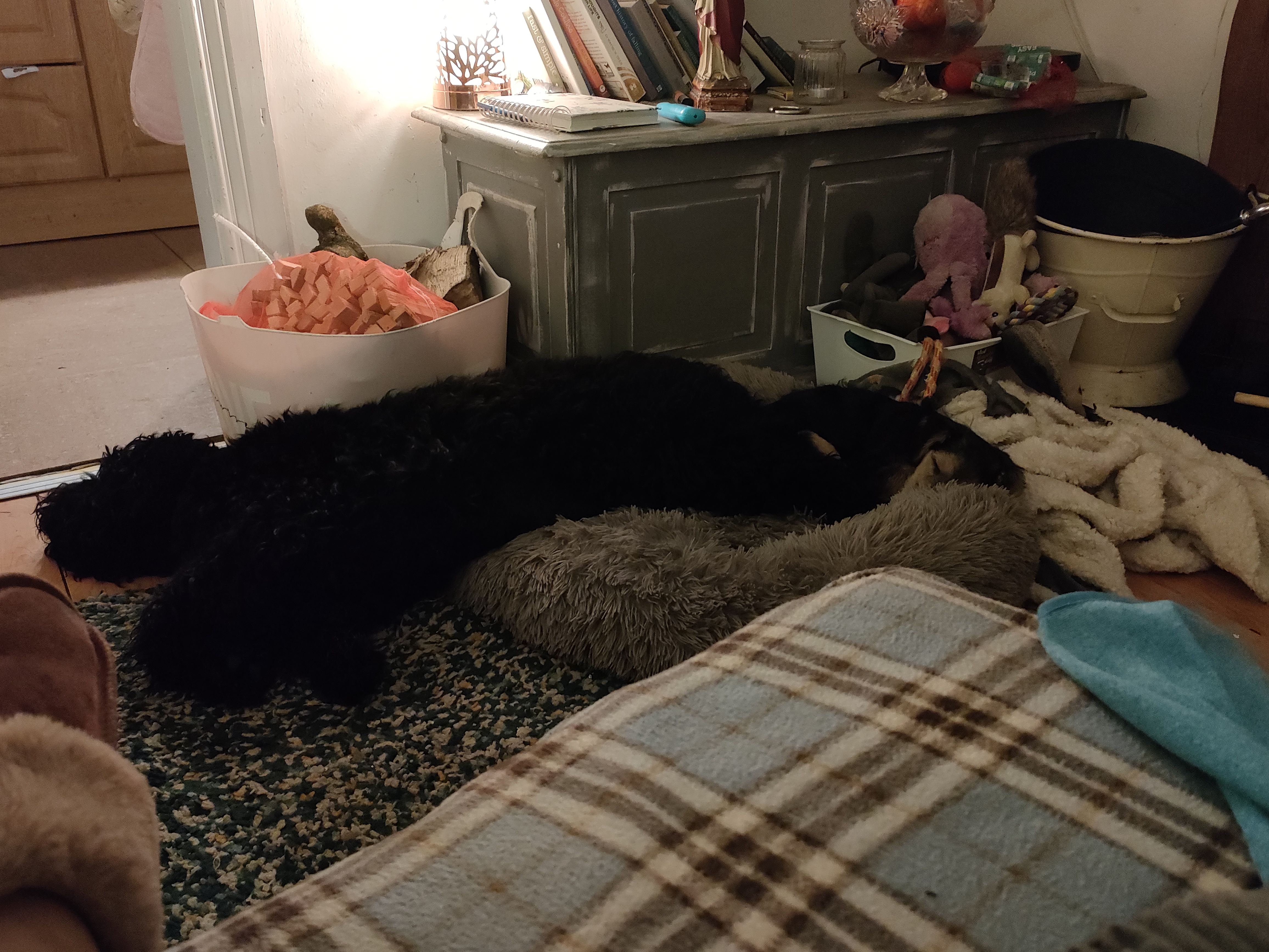 A few things have remained in place, namely that Elfie’s place in mummy and daddy’s bedroom at night is non negotiable. Although occasionally we let the naughties in early in the morning at weekend and RD and I end up in bed with three dogs and a cat! All snoring.