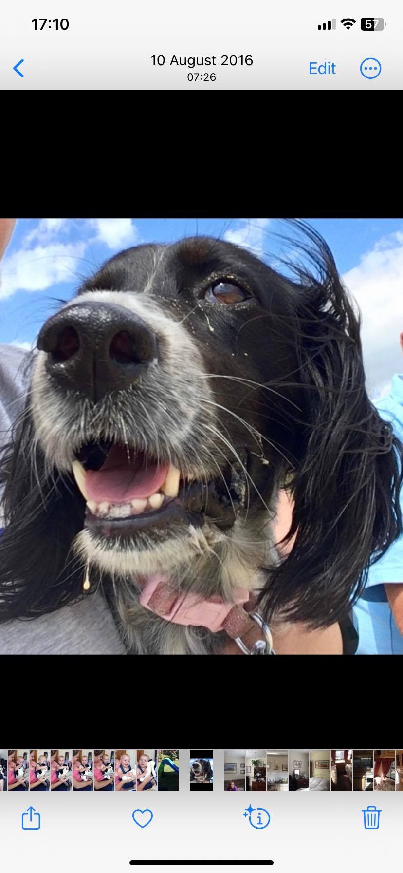 Boo became Den’t dog, she worshipped him and he worshipped her. They were inseparable. She lived by the seaside and then moved to Lincolnshire to live in a big house with lots of land. It didn’t stop her escaping and running wild as she always did (I stayed up all night one night waiting for her to come back.) But Den just bought her a tracker and sat for hours patiently waiting for her to come back to him, he accepted Boo for who she was, and he loved her for it. She lived in a chaotic (I know Mary won’t mind me saying that) loving house, which she loved in contrast to the house she had come from; and she knew love like she had never known it before.