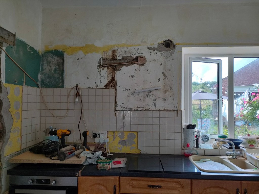 The kitchen has been straightened out, I now have more light, and so much more room. The fridge freezer is now in the kitchen, which used to be the hall before RD cut the wall out (and turned into an Irish Leprechaun) rather than at the end of the back room. But that in itself has been a revelation, which I will blog about another day. Another phase was achieved.