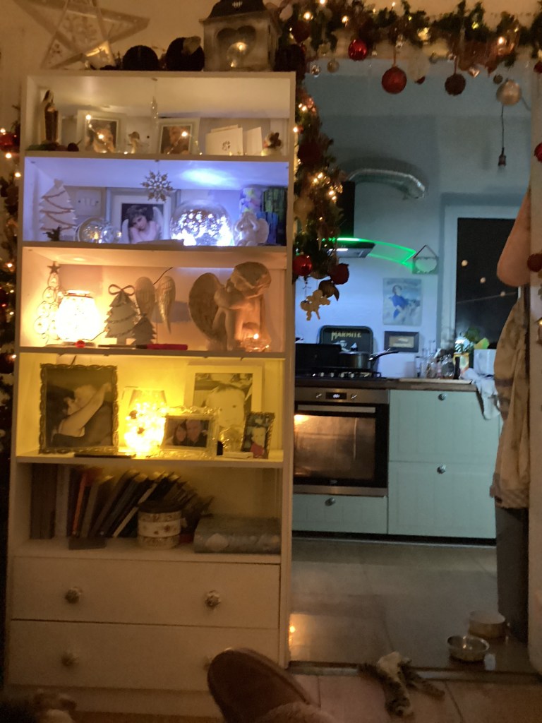 Due to Elfie we lifted the cheap tree we had bought when we first moved here, up out of her way. Elfie never touched a thing.
