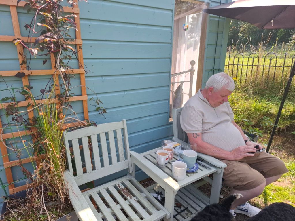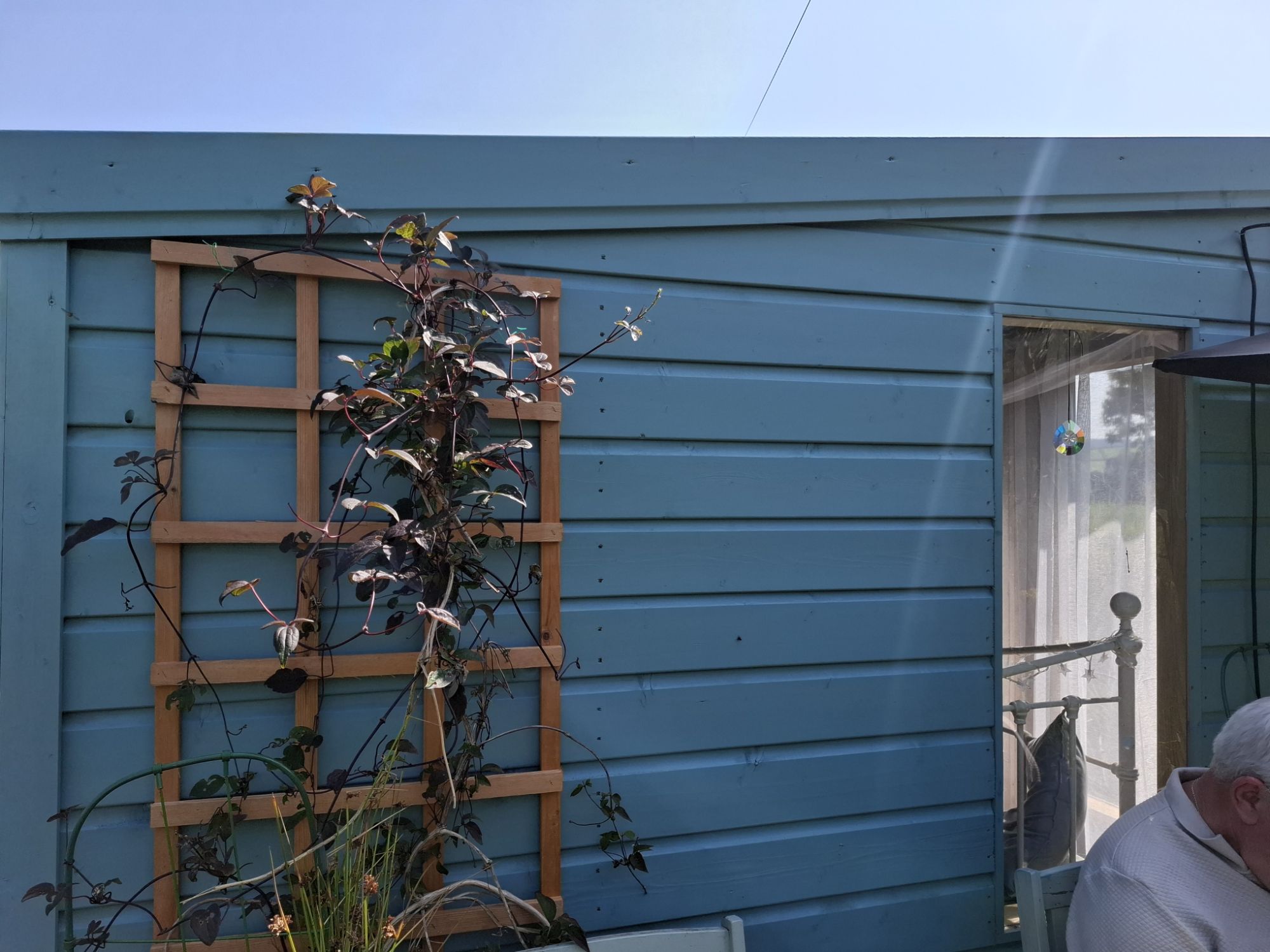Monday we went shopping, and Tuesday, in our garden which was reading 31 degrees, we finished the summer house with a second coat.