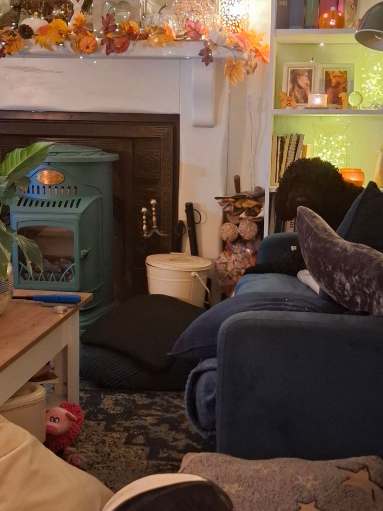 After the storms in January, when we had no electricity for about thirty- six hours, we purchased these little battery run lamps. Since storm Amy we have now purchased a power pack to charge our phones, and torches, and because the heating is affected we also bought a beautiful gas stove.