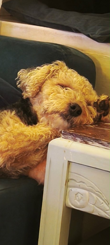 The pictures I quickly captured are so beautiful they look like paintings. I thought I would share them with you. They include one Of Pixie, worn out after a busy day window watching.