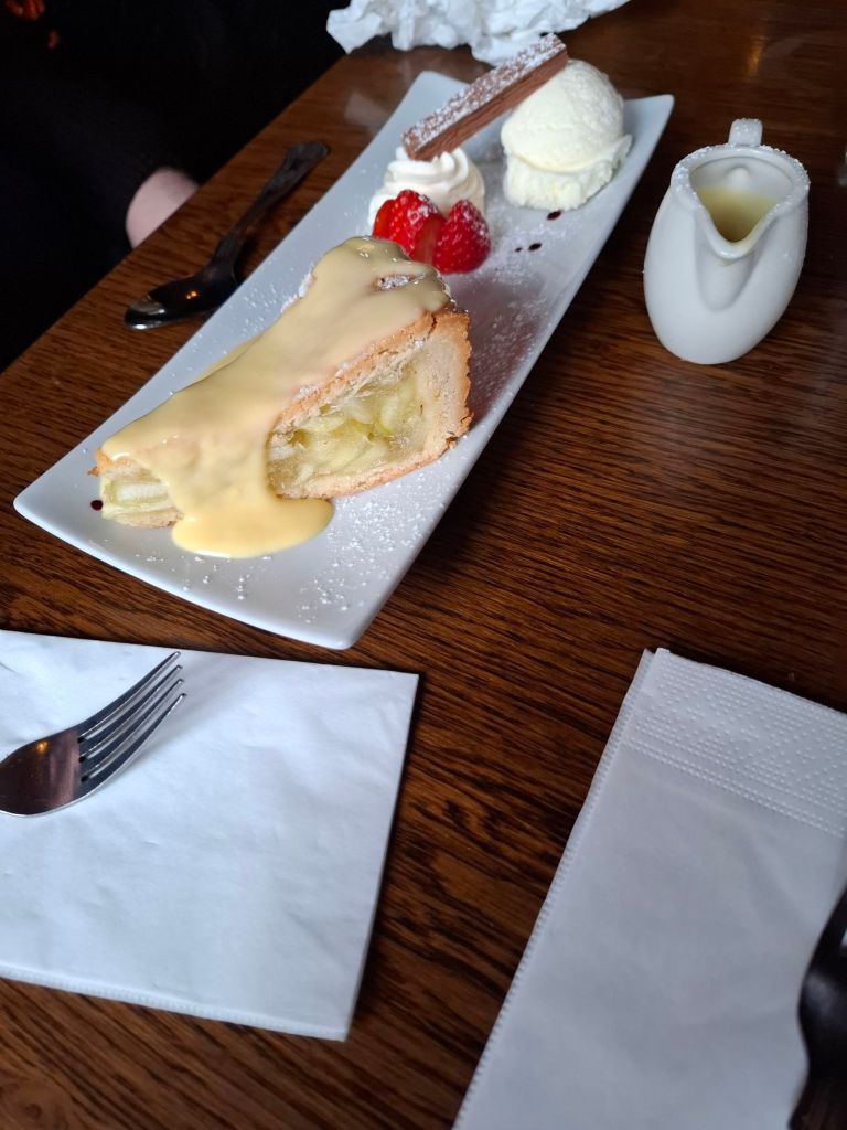 The next day we vetoed breakfast and had lunch in the Castle Bar, an award winning restaurant, specialising in seafood. It was amazing. We sat in the bar, which is part of Donegal Castle, by a roaring fire, overlooking the castle. I had pan fried hake, on a bed of mash and creamed cabbage, and lemon cream sauce. RD had the most amazing fish pie. All followed by apple pie, and chocolate fondant.